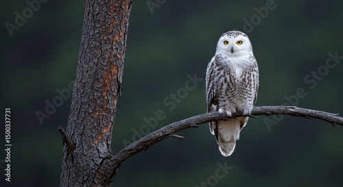 Photo of Snowy Owl Perched On Branch In Forest During The Day