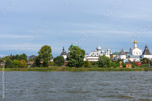Picturesque aerial view of Kremlin in Rostov, Russia. The Golden Ring of Russia.
