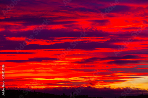Picturesque dramatic colorful vibrant sunset sky with clouds