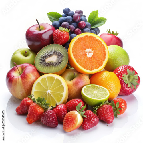 fruit, berry, health food, antioxidant, vitamin, mineral, fiber, fresh fruit, farm fresh, harvest, variety, apple, orange, grape, strawberry, blueberry, kiwi, plum, cherry, still life, composition, healthy eating, vegan, vegetarian, snack food, isolated, white background, cut-out