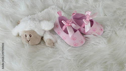 teddy bear, teddy, shoes, baby, birth, shoe, plush, greeting card, congratulation, toy, gift, postcard, bear, decoration, girl, baby shower, white, bright, cute, newborn, happy, happiness, event