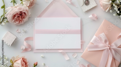pink, envelope, rose, rose, ribbon, bow, gift, floral, wedding, romance, love, invitation, card, stationery, blank, elegant, delicate, feminine, pastel, soft, white, background, design, decoration, celebration, special, occasion, greeting, beauty, beauty product, flower, floral arrangement, flower petals, bloom