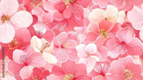 digital artwork, floral pattern, spring flower, flower petals, cherry blossom, floral pattern, pink flower, seamless pattern, blossom