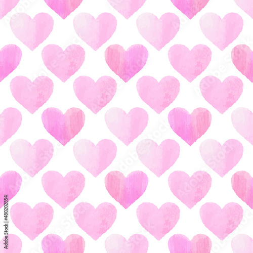 pink watercolor hearts on a white background. Hand drawn seamless pattern, vector illustration. Texture for fabric, wrapping, wallpaper. Decorative print.