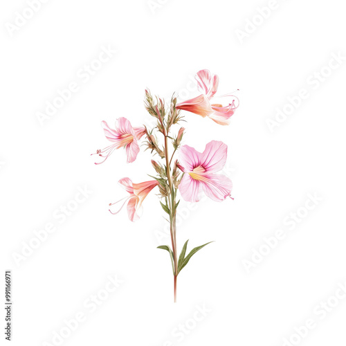 pink, flower, wildflower, blossom, bloom, floral, nature, botanical, botany, plant, spring, summer, delicate, fragile, beauty, natural, background, isolated, white background, cut-out, clipping path, graphic design, illustration, watercolor, digital artwork, floral pattern, wallpaper, greeting card, invitation, decoration, artwork, art, garden, garden flower