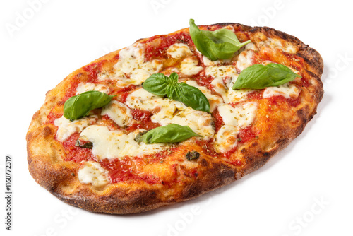 Pinsa romana con mozzarella, pomodoro e basilico, cibo italiano