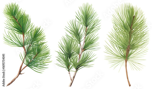 PNG Illustrated pine tree branches, element set on transparent background