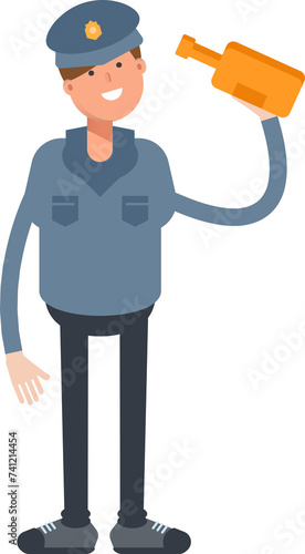 police, man, person, cop, officer, people, illustration, character, cartoon, avatar, bottle, drink, beer