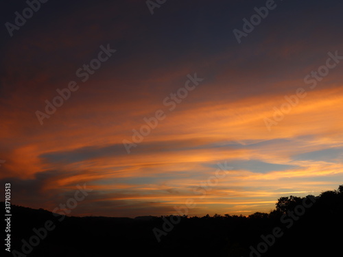 sunset, heaven, cloud, sun, orange, landscape, sunrise, nature, evening, dusk, red, horizon, blue, beautiful, silhouette, colours, spark, yellow, tree
