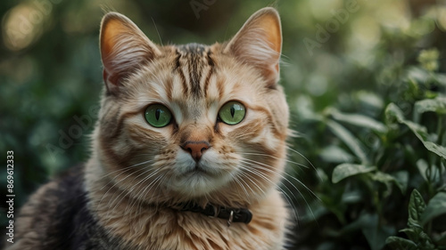 Portrait of a cute cat with green eyes.