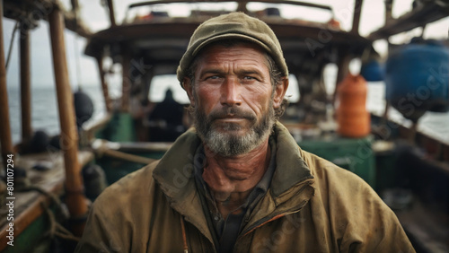 Portrait of a fisherman in boat
