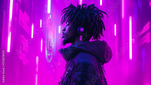 creative, generation, curiosity, neon, beard, display, electronic, mystery, portrait, man, luminance, youth, wonder, jacket, modern, ambience, fashion, head, intrigue, innovation, futuristic, glow, setting, abstraction, technology, profile, pink, artistic, digital, thought, contemplation, illumination, intensity, male, face, device, future, concentration, earphones, ambient, light, trend, magenta, cool, earphones
