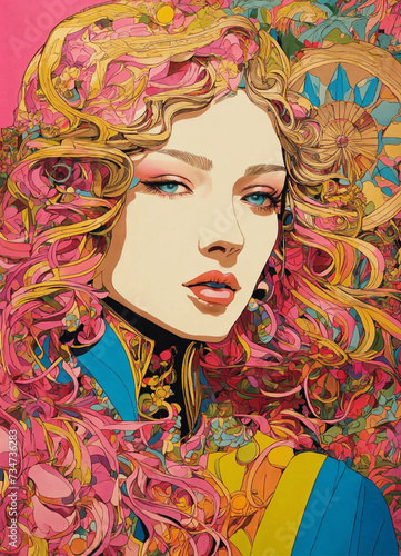 woman, beauty, fashion, face, hair, model, make-up, lady, illustration, art, head, style, glamour, red, person, eye, lip, people, coiffure, retro, vector, pink, smile, colours, fantasy