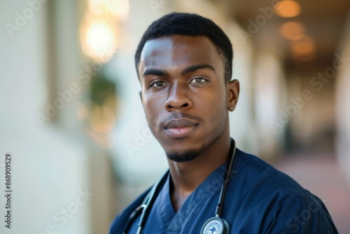 people, young, male, african american, portrait, health care, medicals, professional, indoor, hospital, clinic, uniform, stethoscope, occupation, work, doctor, nurse, medicine, health, treatment, sharpened, emotion, compassion, skill, expertise, individual, youth, nursing, modern, technology, innovation, job, career, dynamic, professionalism, man, equity, inclusion, diversity, lifestyle, copy space, 1
