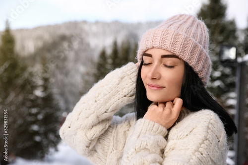 Portrait of beautiful young woman on winter day