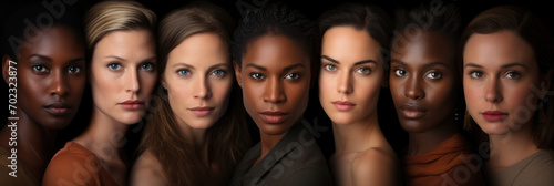 Portrait of multiethical young women standing in a row. Horizontal banner