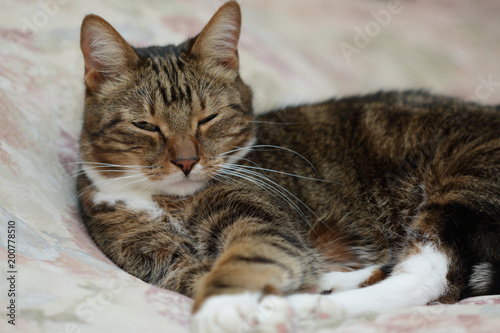 cat, domestic, adorable, animal, felino, close, closeup, cute, portrait, eye, fluffy, fur, furry, looking, mammal, nature, nobody, home, room, indoor, 1, single, pet, lay, soft, staring, striped, whisker, brown, tabby, sleep, sleeping