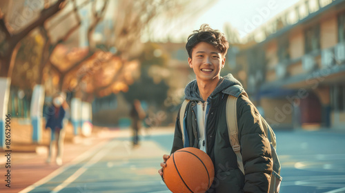 Portrait of smiling young male basketball player holding basketball.Generative AI