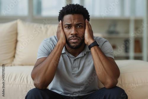 black man, afro, african american, portrait, stressed, black, man, sitting, couch, hand, sad, staring, head, male, depressed, upset, camera, stress, unhappy, adult, person, problem, guy, home, trouble, pain, sick, migraine, expression, despair, frustration, business, anxiety, sorrowful, emotion, tension, ache, sleepy, suffering, cephalalgia, worried, desperate, indoor, lifestyle, cephalalgia, sofa, casual attire, face, alone