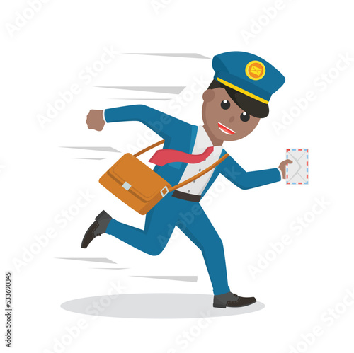postman african running delivering letter design character on white background
