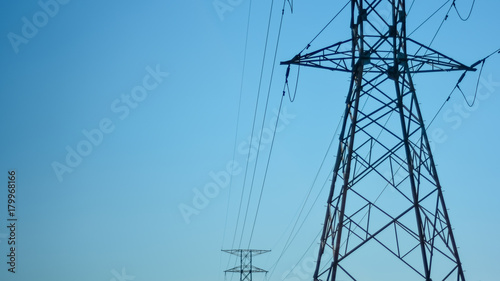 electricity, power, energy, tower, electric, pylon, sky, cable, line, voltage, steel, wire, industry, electrical, high, transmission, blue, construction, line, pole, metal, structure, industrial, supply, wire