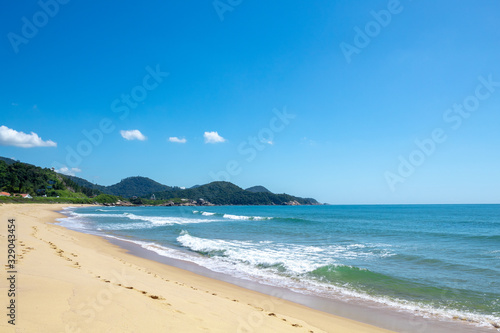 Praia tropical, mar verde Mar verde da Praia da ilhota ou praia do Plaza, itapema, SC, Brasil