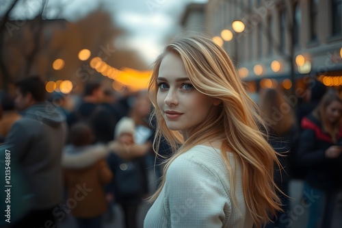 woman, festival, smile, event, blond, party, outside, happy, portrait, face, bokeh, night, light, vibrant, cheerful, street, crowd, fashion, confident, celebration, nightlife, beautiful, attractive, dress, holiday, joy, relaxing, leisure, mood, travel, tour, tour tourism, joyful, pretty, beauty, embracing, background, girl, together, happiness, outdoors, lifestyle, people, hair, glamour, teenage, model, lady