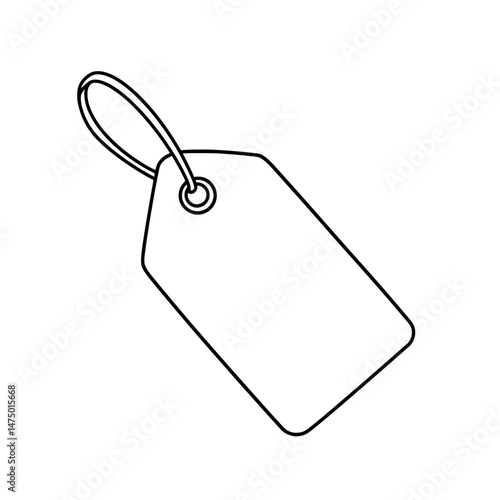 Price Tag A white price tag attached with black string, isolated on a clean white background