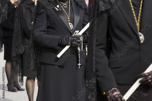 asturias, spain, catholicism, christian, city, clothes, costume, easter, europa, exterior, faith, festive, holiday, holy, semana santa, lifestyle, penitent, people, procession, religion, sunny, tradition, travel, urban, woman, rosary beads, candle, glove