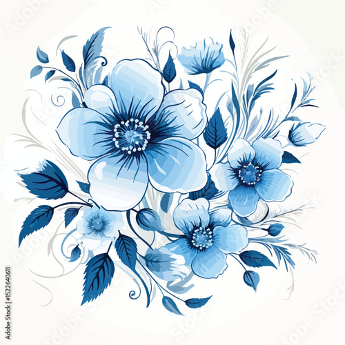 Professional blue flower decoration floral ornament drawing for design projects