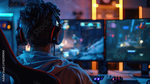 computer, technology, gamer, competition, person, fun, cyberspace, female, headset, woman, video game, championship, desk, entertainment, game, horizontal, cyberspace, keyboard, microphone, online, photo, play, screen, video, computer monitor, gaming, mouse, setup, streamer, streaming, earphones, modern, digital, desktop pc, indoor, lifestyle, one person, playing, young adult, color image, home, adult, adults only, action, challenge, chat