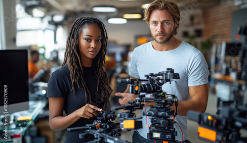 Professional team collaborating in a modern studio environment