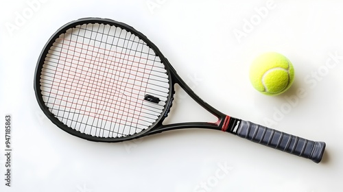 sport, equipment, tennis, racket, ball, game, play, activity, recreation, leisure, court, competition, net, string, grip, handle, athlete, exercise, fitness, training, tournament, match, championship, professional