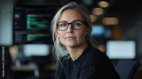 woman, office, sharpened, technology, goggles, computer, professional, portrait, casual clothes, screen, digital, team, strategy, work, productivity, concentration, innovation, leadership, collaboration, creativity, decision-making, multitask, intelligence, research, software, communication, idea, project, corporate, aesthetic, environment, success, planning, efficiency, workspace, solution, empowerment, goal, inspiration, engagement, function
