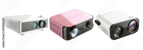 Projectors set isolated on transparent background with modern devices