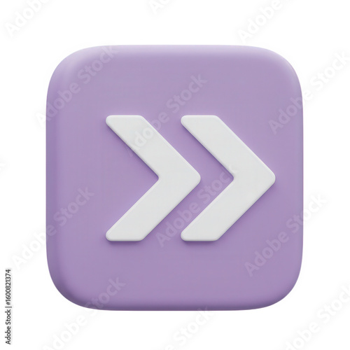 fast, forward, next, arrow, symbol, interface, navigation, media, player, music, video, control, double, chevron, purple, white, three-dimensional, render, graphic, design, element, app, software, digital, communication, movement, direction, speed