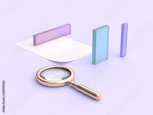 three-dimensional, abstract, background, blank, blue, clean, clear, equipment, eye, floor, geometric, glossy, gold, group, illustration, magnifying glass, metallic, minimal, object, paper, pastel, pink, purple, scene, set, shape, still life, studio, tool, transparency, violet