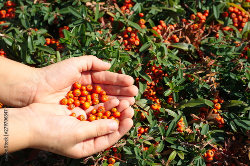 paddy, park, bloom, bunch, bush, core, currant, dwarf, flower, fruit, garden, grape, leaf, orange, outside, part, plant, production, seed, thorn, thorny, tree, vegetable, wild plant, background, green background, alternative medicine, diabetes, vitamin, herbal tea, woman, human, hand, finger, handful, full, palm