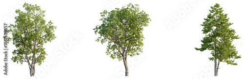 Quercus macrocarpa tree plan, top view, cutout, transparent background, isolate, good for architecture visualization, Three lush green trees, natural foliage, plant life, vibrant springtime