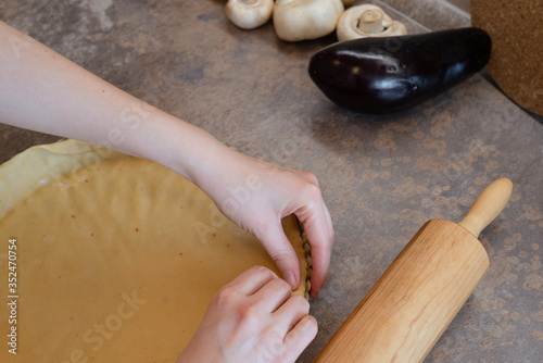 dough, food, cooking, flour, kitchen, hand, hand, baking, preparation, pastry, bread, woman, cook, kneading, making, baker, pizza, cake, pin, raw, rolling, homemade, closeup, chef, bakery, crust, quiche, french, cookery, cream, healthy, fresh, pie, meal, lunch, savoury, tomatoes, vegetable, health food, puff pastry, egg, salty, cookery