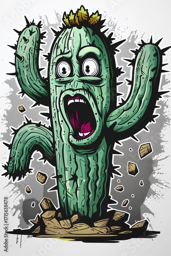 vintage, illustration, graphic design, desert plant, succulent, confused, bewildered, problem, humorous, quirky, branding, merchandise, children's book, gardening, succulent, cartoon, drawing, graphic, comical, funny, plant, problem solving