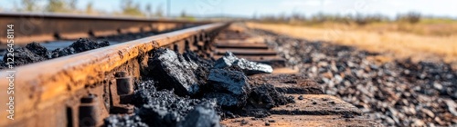 railway, train, track, coal, empty, open, field, landscape, macro, perspective, nature, rural, transportation, horizon, travel, industry, scenic, distance, detail, land, mineral, mining, autumn, path, exploration, texture, line, symmetry, infrastructure, freight, urban, calmness, environment, clear, sky, shadow, colours, peaceful, view, journey, motion, scenery, wide, angle, minimalism, geology, area