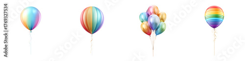 Rainbow Balloons Collection for Celebration and Party on White Background