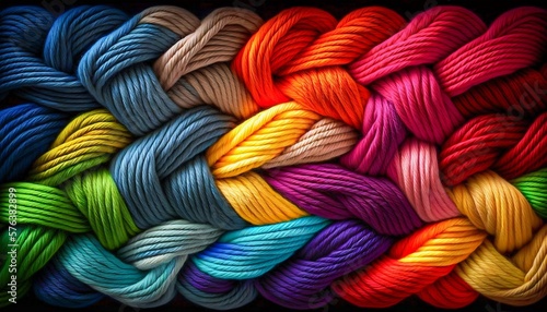 Rainbow interlaced yarn threads for knitting background. Generative AI