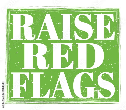 RAISE RED FLAGS, text on green stamp sign