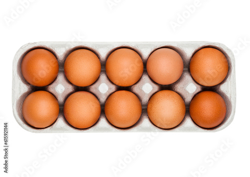 Raw farm fresh eggs in white paper tray isolated on white background