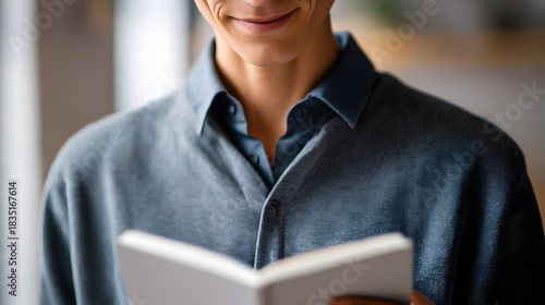Reading with Serenity: An individual is immersed in the quiet activity of reading a book. capturing the focus and content of the act of reading.
