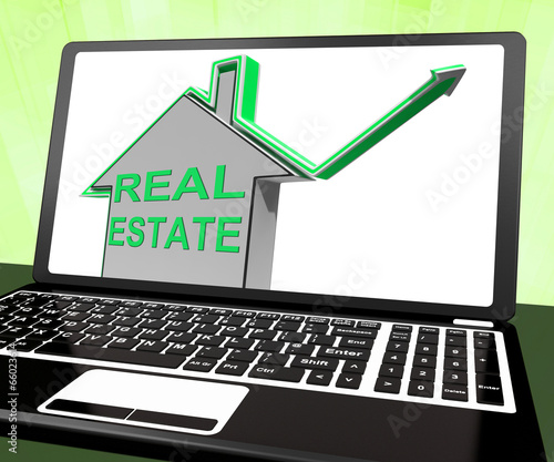 Real Estate House Laptop Means Selling Or Buying Land And Proper