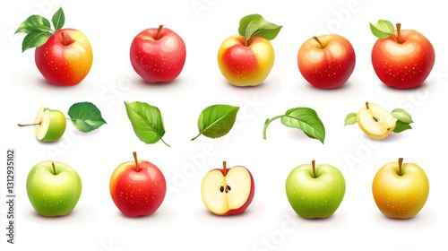 apple, fruit, red, green, slice, healthy, nature, food, vitamin, diet, juicy, fresh, organic, health food, nourishment, natural, vegan, delicious, wholesome, closeup, ripe, image, isolated, background, studio, digital, illustration, realistic, still life, apple slices, leaf, leaf, food photography, fresh fruit, graphic design, healthy eating, closeup, digital artwork