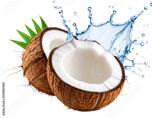 Realistic Splashing Coconut Water with Half Coconut